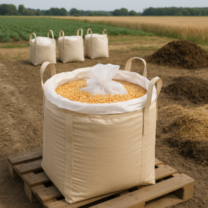 肥料や堆肥の保管・輸送にも、この丸型・小型(〜500L未満)・内袋付きフレコンバッグはお勧めです。特に有機肥料などは湿気に弱いため、内袋付き仕様の防湿性能が大きなメリットとなります。
