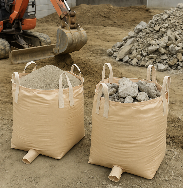 建設現場や土木工事では砂や砕石、セメントを扱います。小型フレコンバッグなら取り回しがしやすく、小規模工事や短期現場での資材管理に最適です。「少量を現場に運びたい」という依頼に対して、このタイプをお勧めしています。