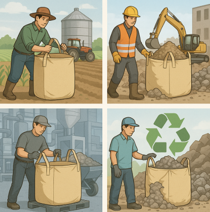 付属品・中型(500L~1,500L未満)・排出口なしフレコンバッグは、農業・建設・工業・リサイクル・防災など多様な分野で活躍し、作業効率化・コスト削減・安全性向上を同時に実現する製品です。