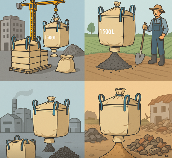 これらの付属品を自由に組み合わせることで、建設現場・農業倉庫・リサイクル施設・防災備蓄など、依頼者の現場条件に最適化されたフレコンバッグをお勧めできます。
