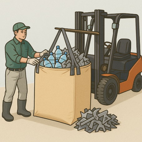 フレコンバッグは、重量物や形状の不揃いな資材もまとめて収容可能です。コンクリート片、流木、泥土などを一度に収集し、効率的に搬送できます。