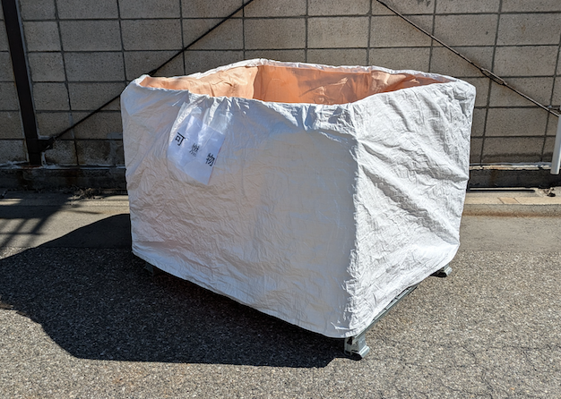 これまで同社では丸型フレコンバッグを中心に使用していましたが、倉庫の省スペース化、分別回収の徹底、網パレットでの在庫管理といったニーズに十分応えられず、特に保管時の安定性や形状のフィット感に課題を抱えていました。