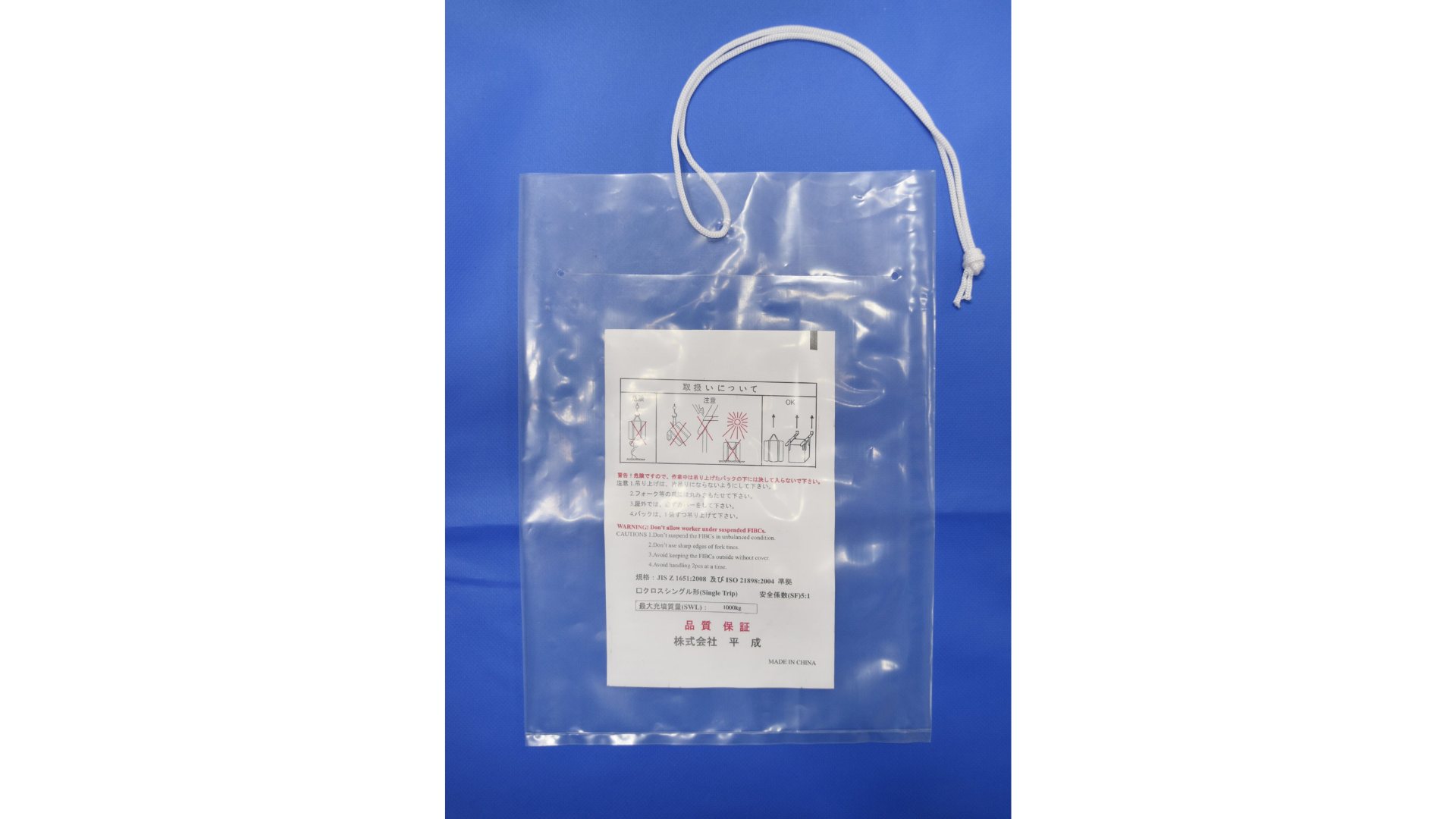 ひも付透明書類入れ「HS-270917」は、コンテナバッグ用の付属品として設計された透明タイプのPE製書類袋です。